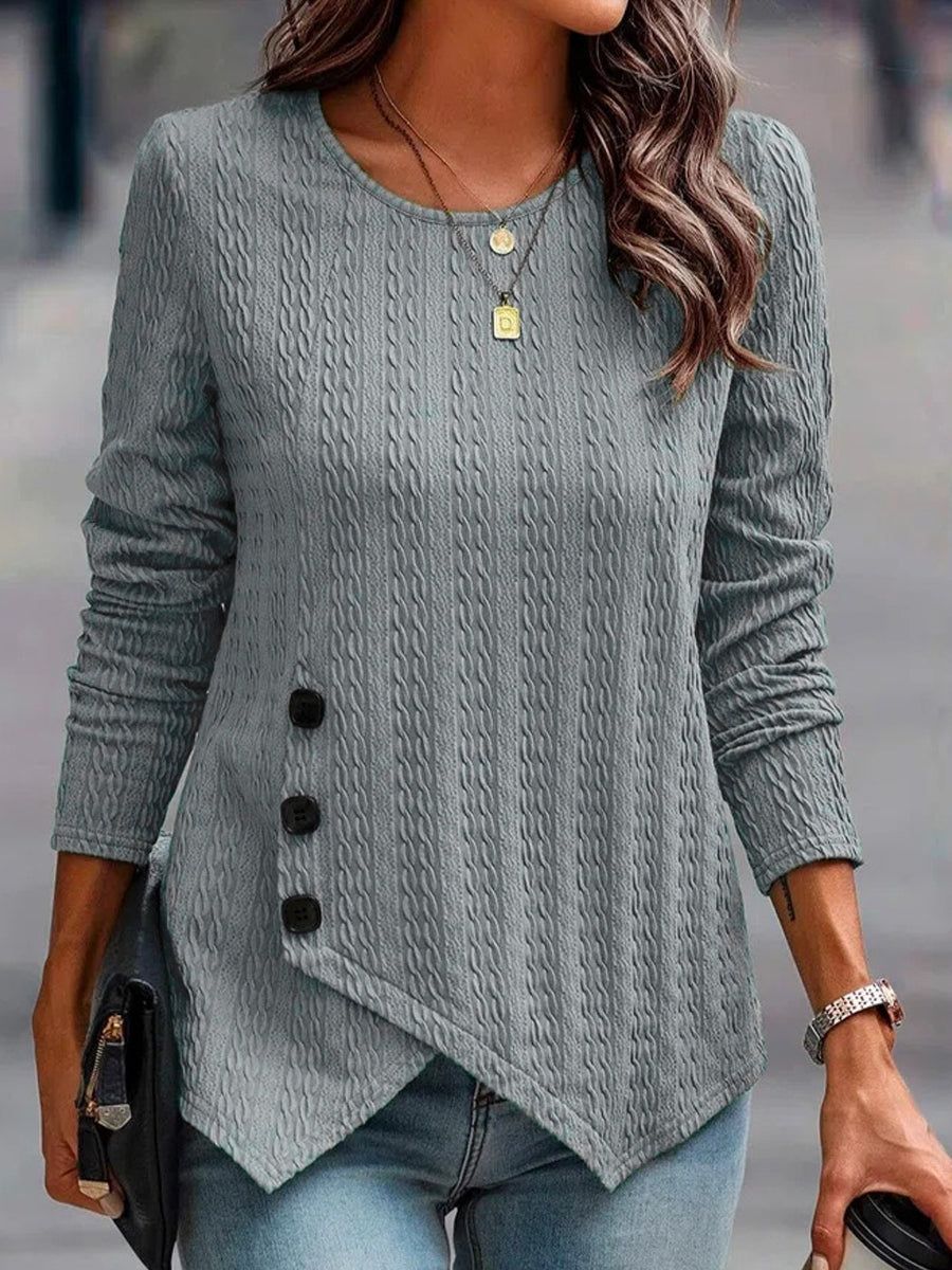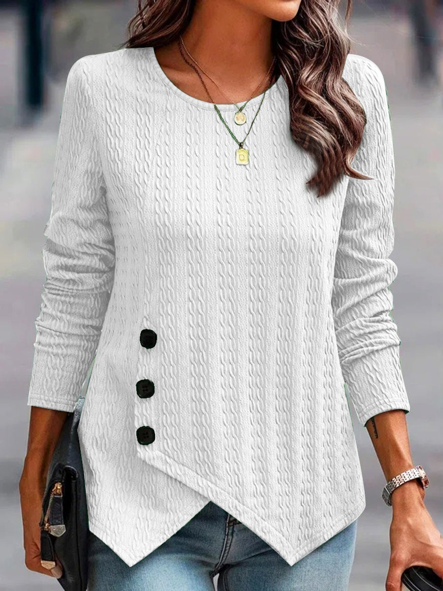 Casual Solid Color Long Sleeve Crew Neck Button T-Shirt